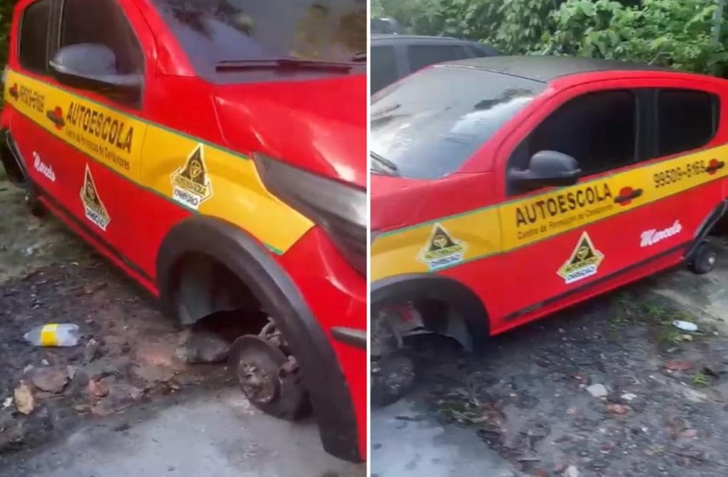 Carro de autoescola tem os quatro pneus roubados enquanto instrutor estava em flutuante no Tarumã