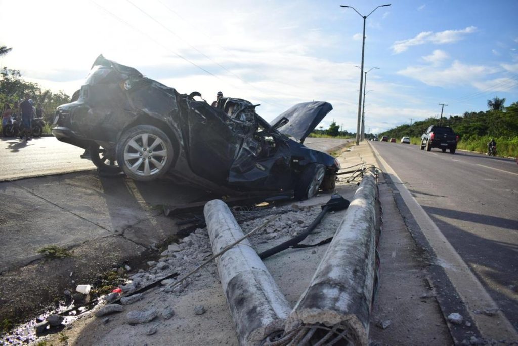 Carro colide com poste na rodovia AM-070 próximo à Ponte Rio Negro