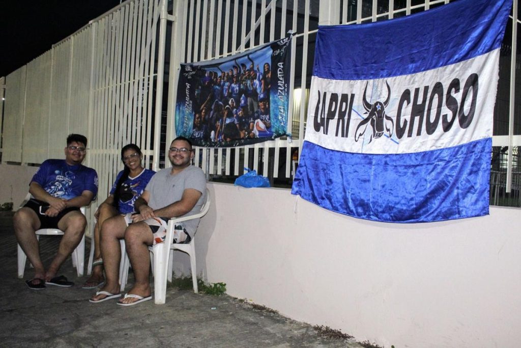 Parintins (AM) – Na noite desta segunda-feira (26), uma bandeira do Boi Caprichoso, juntamente com três cadeiras de plástico e três pessoas abrilhantava, de maneira inesperadamente antecipada, a entrada da fila da galera do Touro Negro no Bumbódromo de Parintins. O trio composto pela autônoma Cristiane Ferreira, 43, pelo engenheiro Ariel Costa, 26, e pelo analista financeiro João Barreto, 23, foi o primeiro a chegar na fila do Boi da Francesa, e, consequentemente, na fila das galeras do Festival.