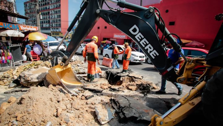 Simultaneamente, as equipes do Distrito de Obras do Centro realizam a recuperação de 5 metros de drenagem profunda na Vila São João, que fica na rua Duque de Caxias, no trecho entre a rua Ipixuna e rua Santa Isabel, onde o rompimento da tubulação começou a provocar alagamento da via, causando muitos transtornos aos moradores. Servidores atuam ainda nos serviços de recuperação da malha viária nas ruas do centro histórico, que sofreram com a grande cheia do rio Negro, mas ainda atravessa o período de vazante com as galerias todas submersas.